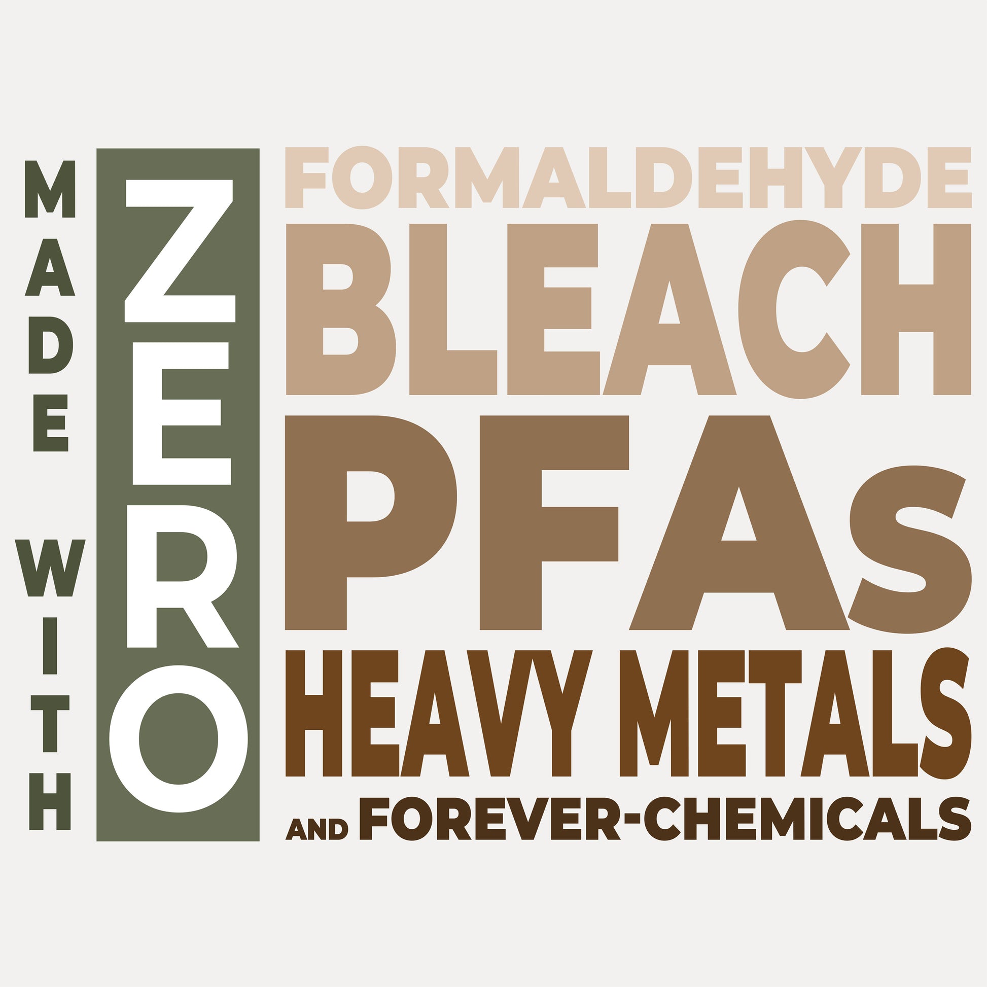 Verified FREE of Harmful Chemicals | Ours is certified PFAS-free (No forever chemicals), certified formaldehyde-free, and certified heavy metal-free. See our third-party testing for PFAS and the testing for Heavy Metals.