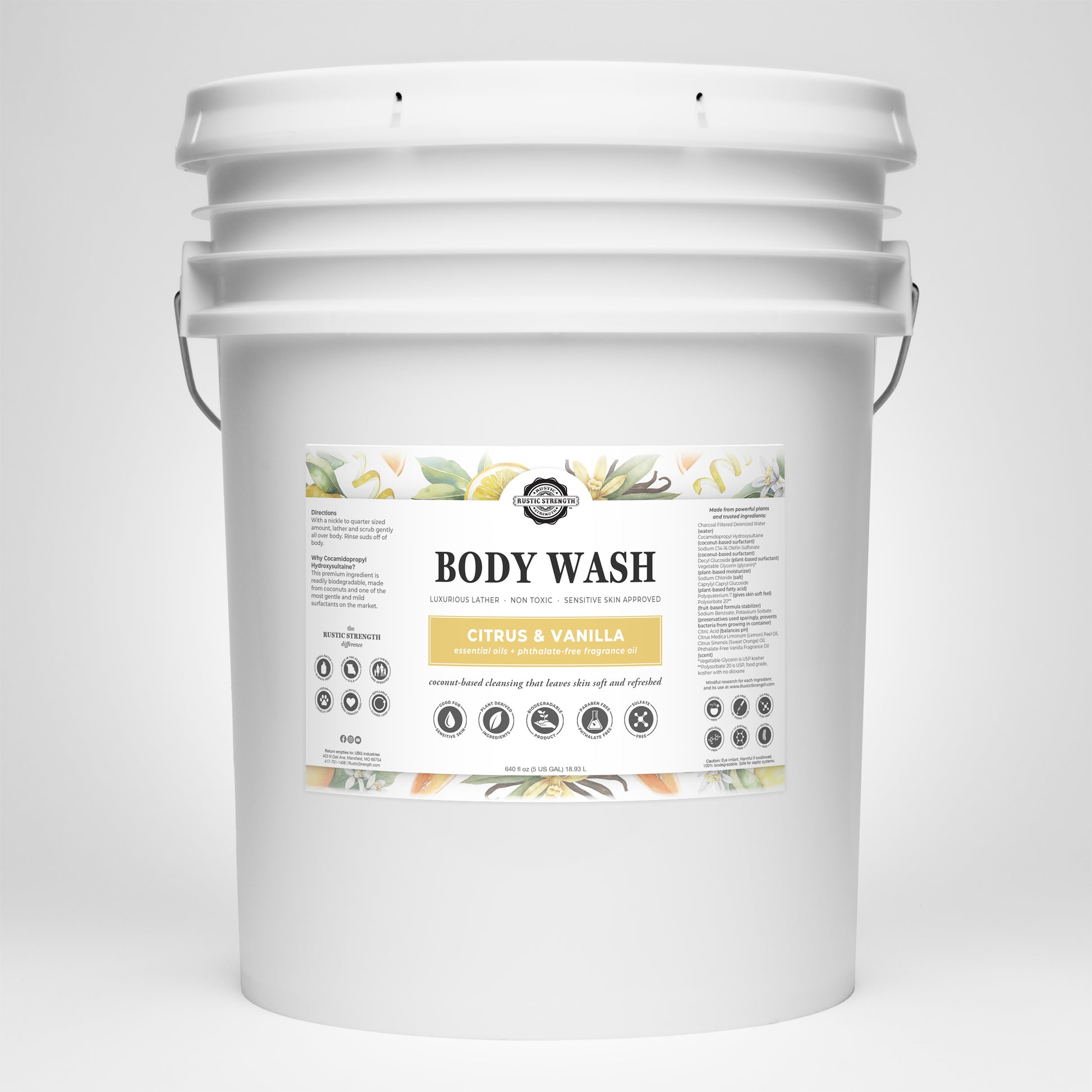 Vegetable Glycerin – Derived from vegetables. It is biodegradable and helps the plant surfactants do their job. Food-grade & kosher.