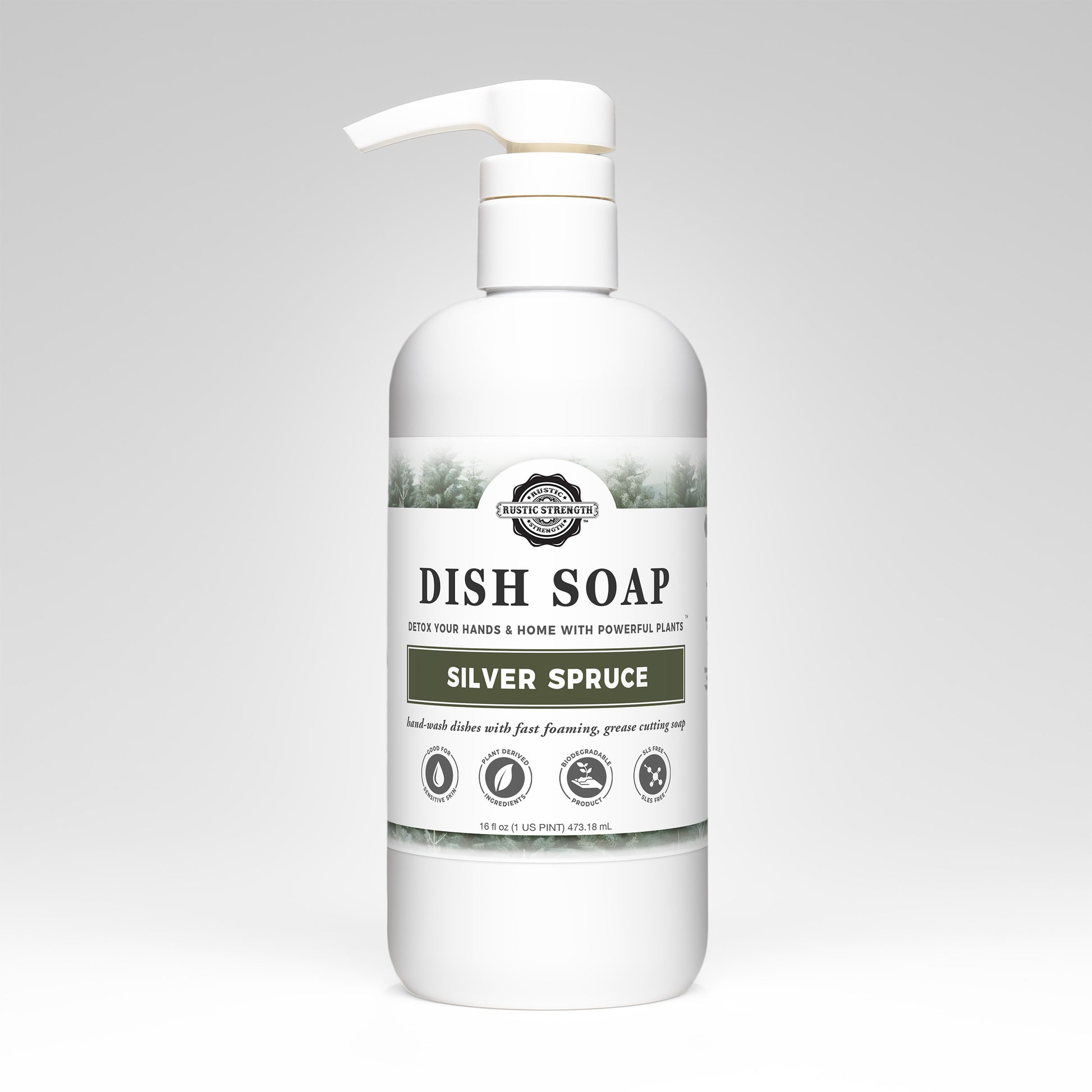 Strong-working Liquid Dishwashing Soap, made from renewable plant + Earth mineral-derived ingredients.