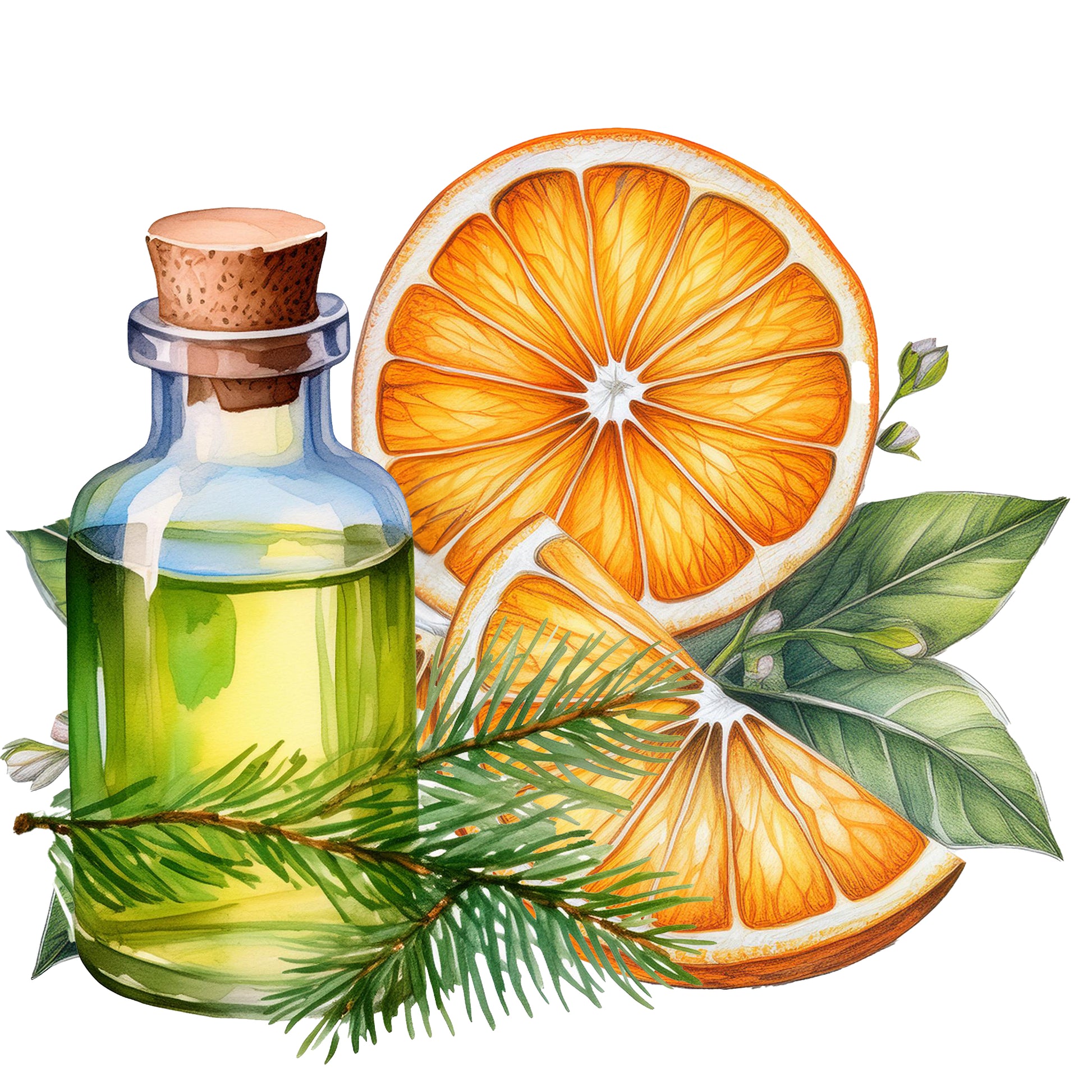 Extraction Method: Steam distilled from needle (Fir Needle), Steam distilled from the peel (Orange)