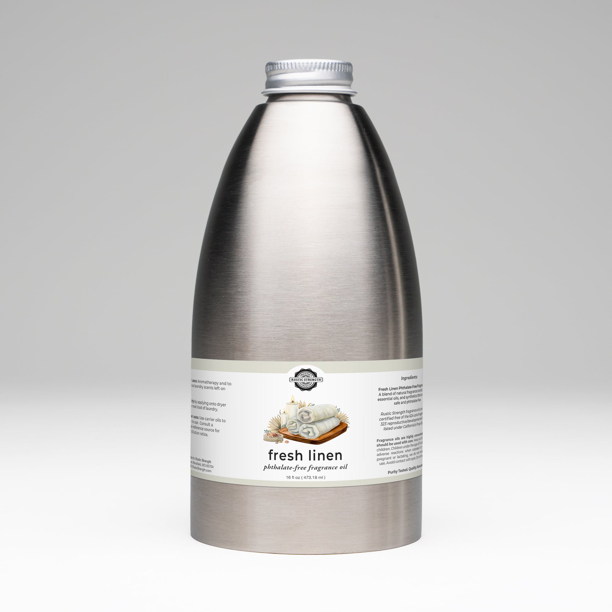 Ingredients: Fresh Linen Phthalate-Free Fragrance Oil (A blend of natural fragrance constituents, essential oils, and GRAS safe phthalate-free synthetics, creating an aroma)