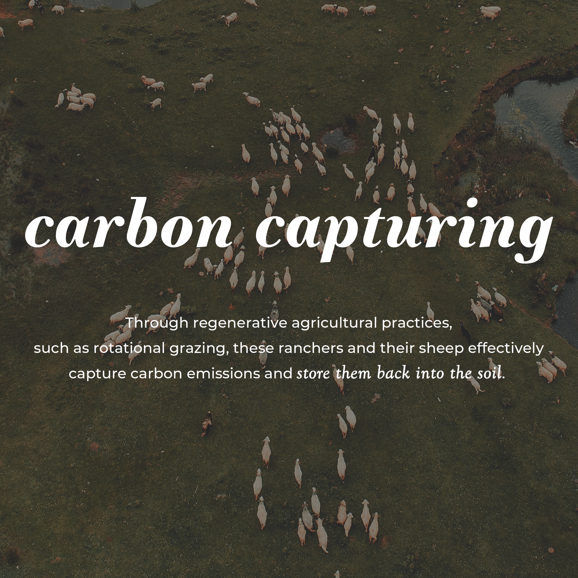 Regenerative Sheep Farm | Wool from sheep who spend their whole lives on open pastures, under the care of the family of farmers. Seasonally their wool is sheered, washed, and then handmade into these dryer balls. All without using bleach or nylon processing. Through their regenerative agricultural practices, such as rotational grazing, natural fertilization, and water source management, carbon emissions are captured and stored back into the soil and the land is improved. Through this Carbon Farm Plan, non-profit Fibershed has verified them as Climate Beneficial.