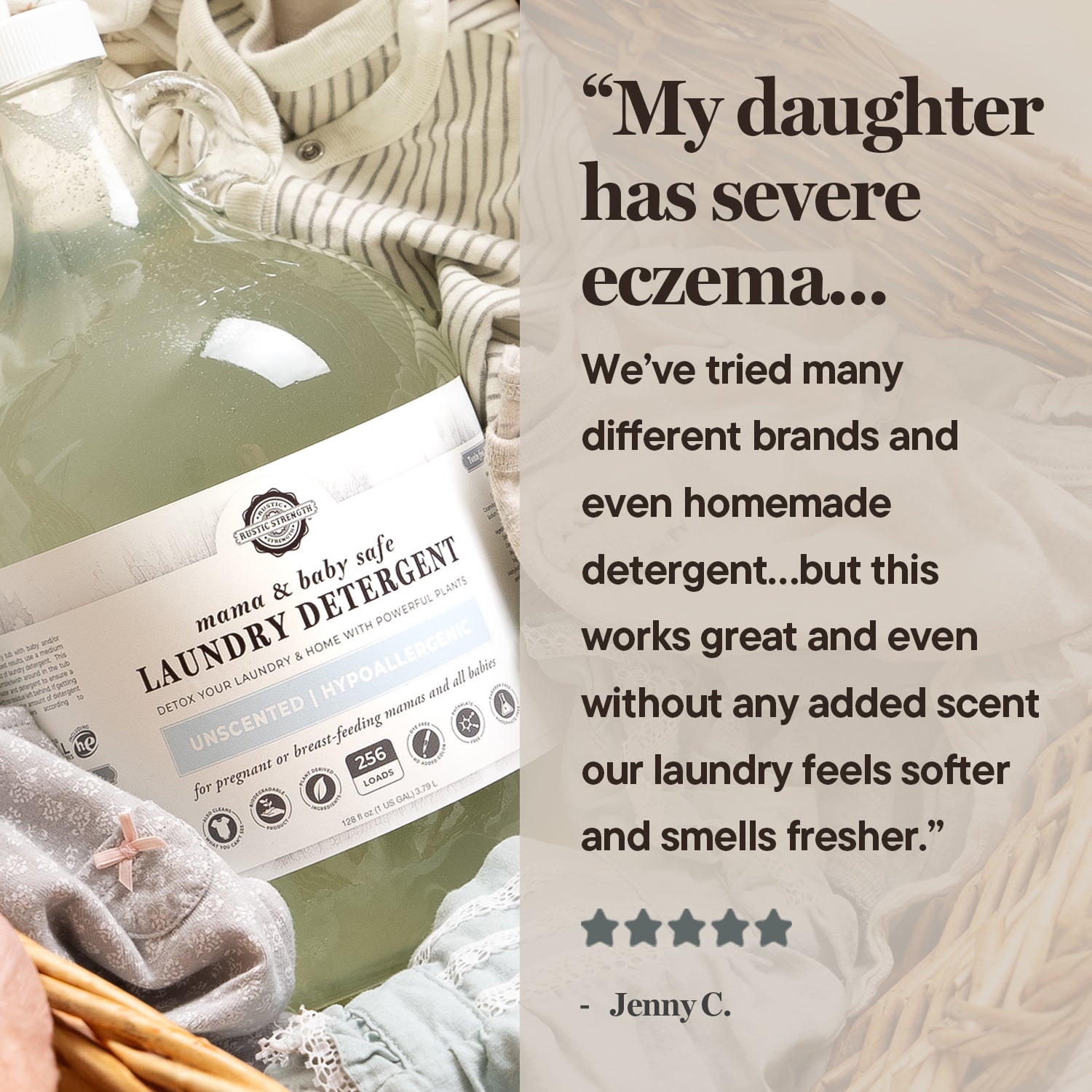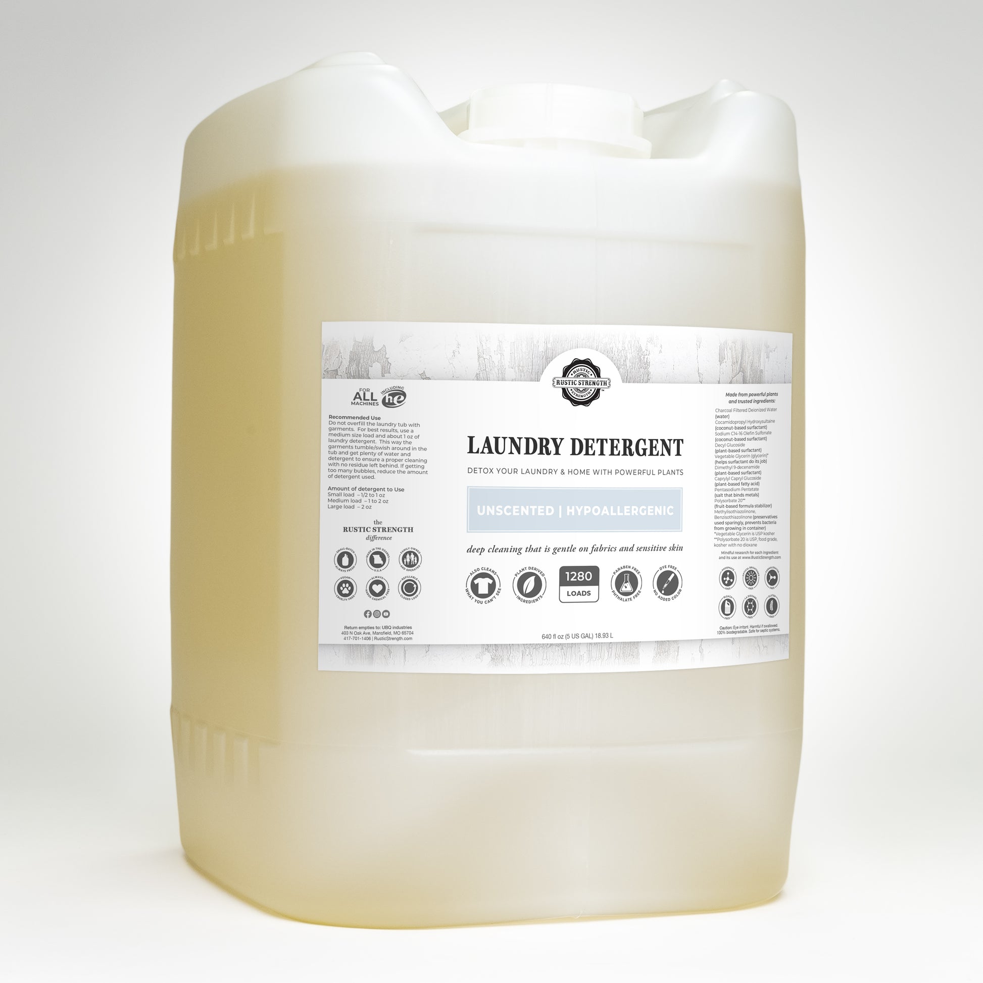 Our liquid laundry detergent is as natural as can be while still being mild, and effective. This cleaning agent is gentle on clothes, does not irritate sensitive skin, and contains no endocrine disruptors. Can be used in regular or high-efficiency washers.