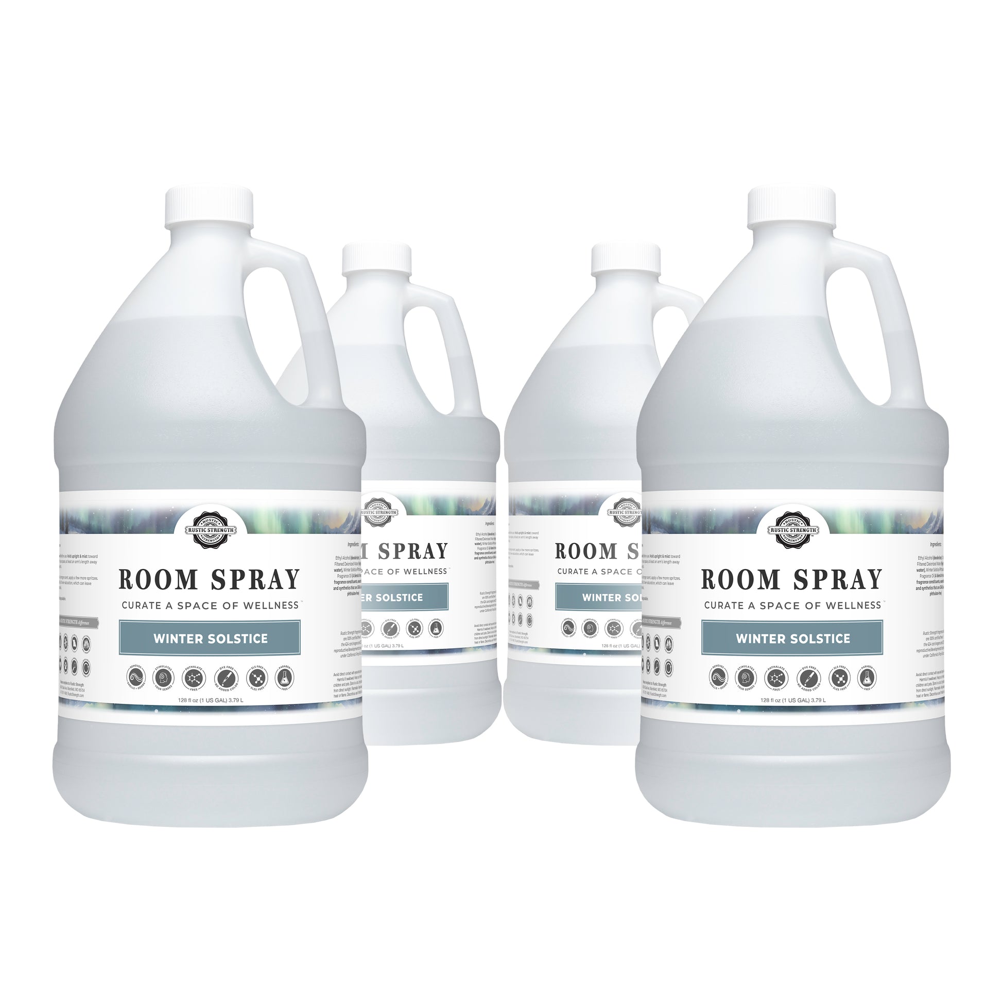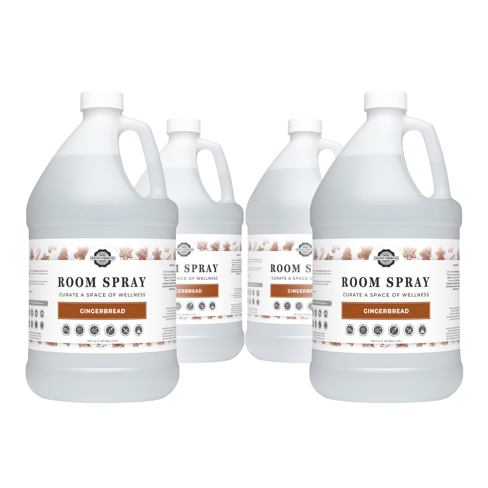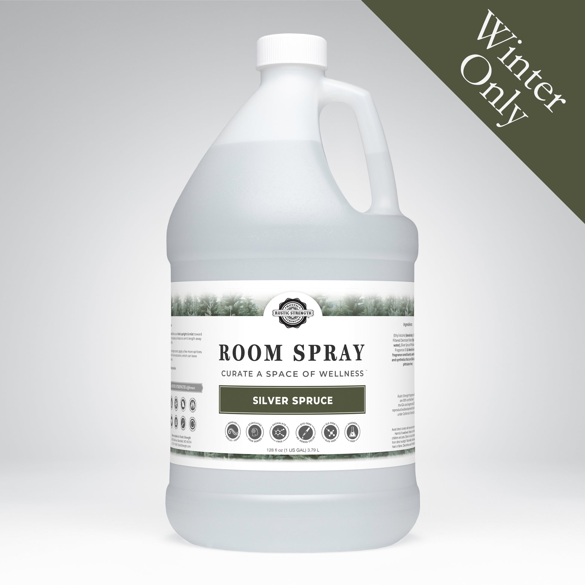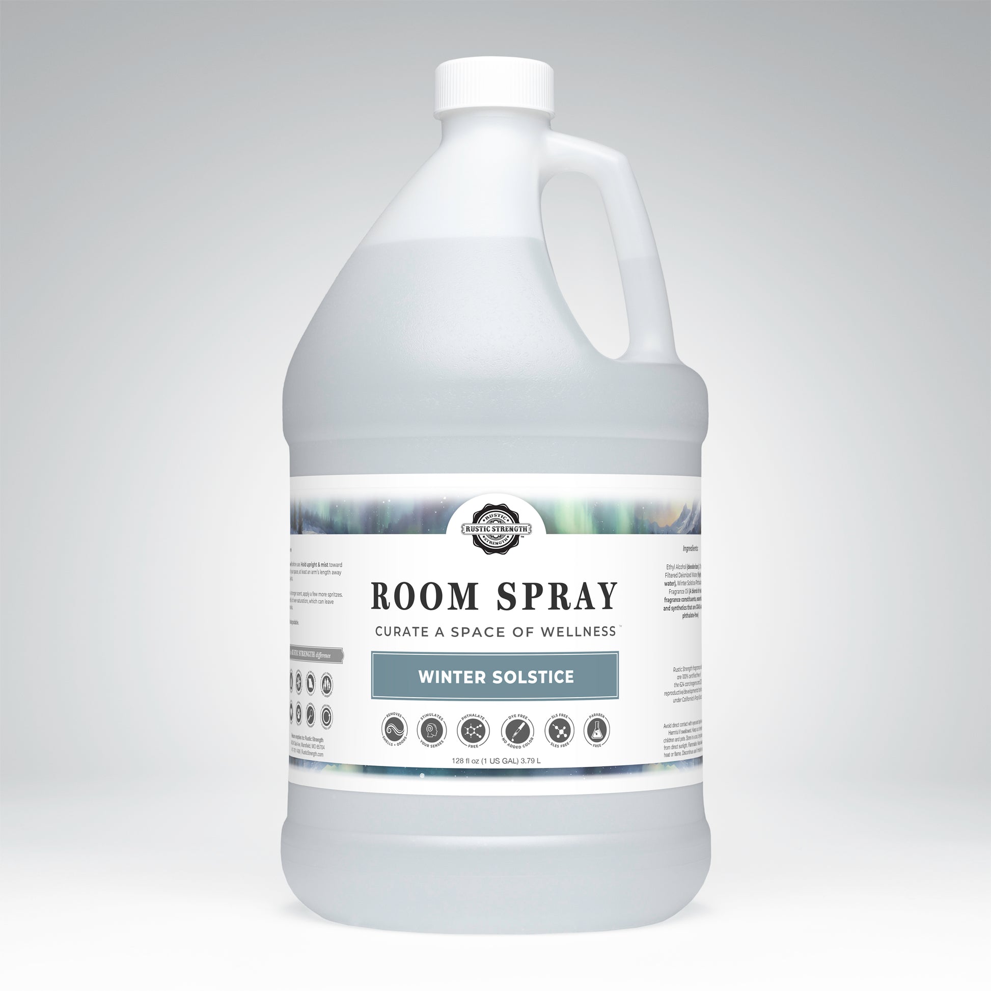 Ethyl Alcohol (deodorizer)Charcoal Filtered Deionized Water (high purity water) EssentialOils and/or Phthalate-Free Fragrance Oils that are GRAS safe (essential oils)Rustic Strength fragrance oils are 100% certified free of the 624 carcinogens and 323 reproductive/ developmental toxins listed under California’sProp 65 act.