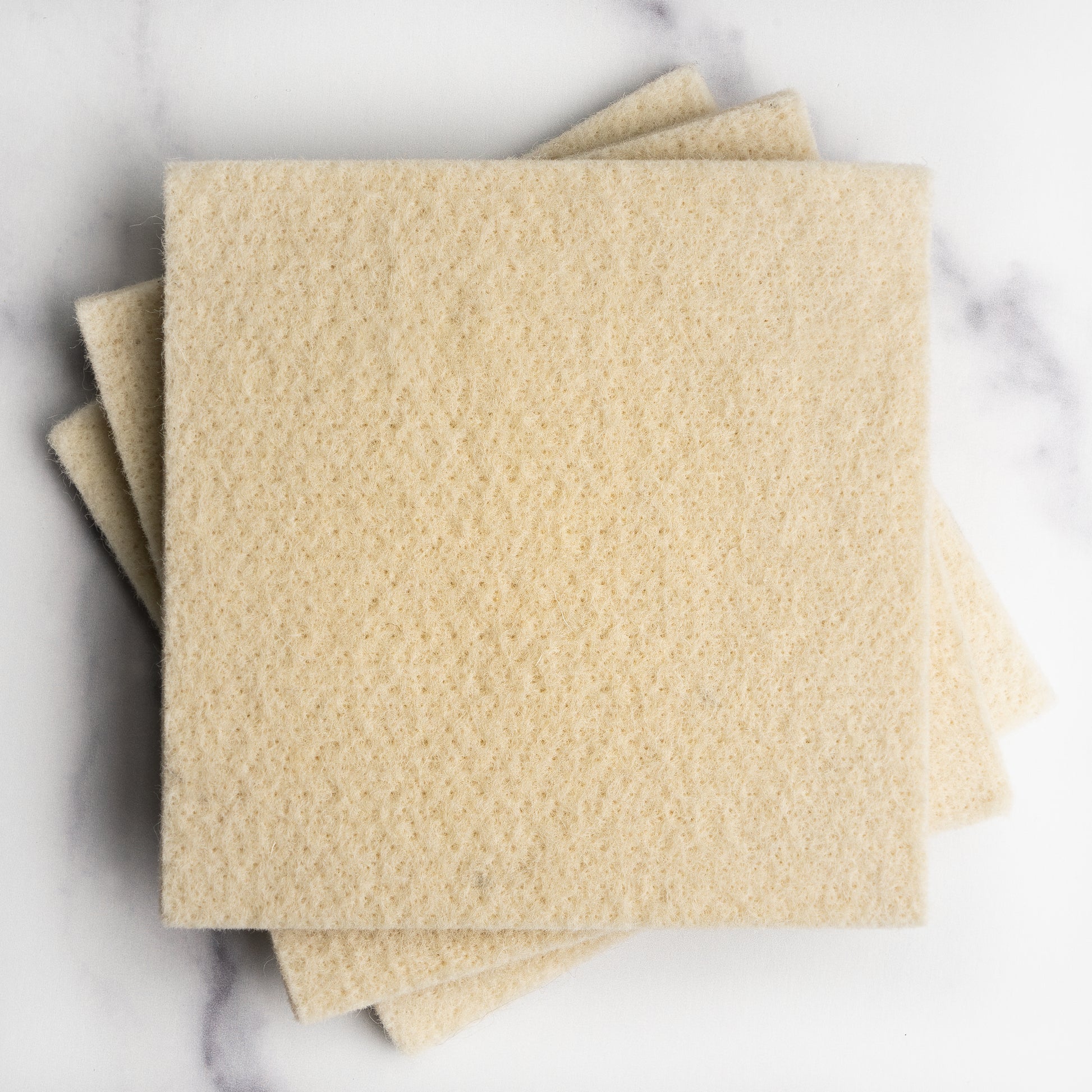 Why Wool | Coarse wool is an ideal sponge alternative for many reasons. It repels odors and has antimicrobial & anti-fungal qualities, preventing it from getting smelly. Its moisture-wicking ability allows for quick drying. Since coarse wool is felted, it becomes even more scrubby with use. Wool is a durable, biodegradable natural fiber that outlasts synthetic fibers and does not contribute to the microplastic crisis. Most users report 6 months to a year per sponge.